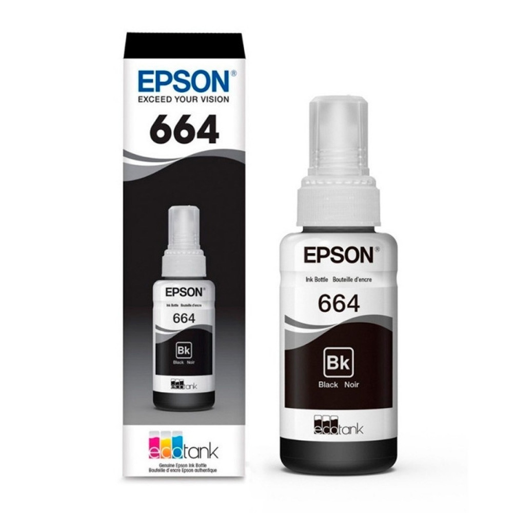 Botella de tinta Epson negra de 70ml. Diseñadas con la más alta calidad para impresiones duraderas. Para impresoras Epson L200, L210, L355, L555.