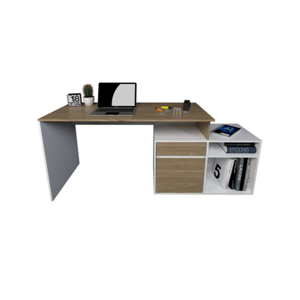 El escritorio 3048-COE Olmo|Everest ofrece un diseño práctico y moderno, ideal para oficina o estudio. Está fabricado en melamina de alta resistencia y cuenta con un mueble bajo con cajón y estante para optimizar el guardado. Su formato modular permite armarlo en línea o en L, adaptándose a distintos espacios. Mide 139 cm de largo, 75 cm de alto y 60 cm de profundidad.