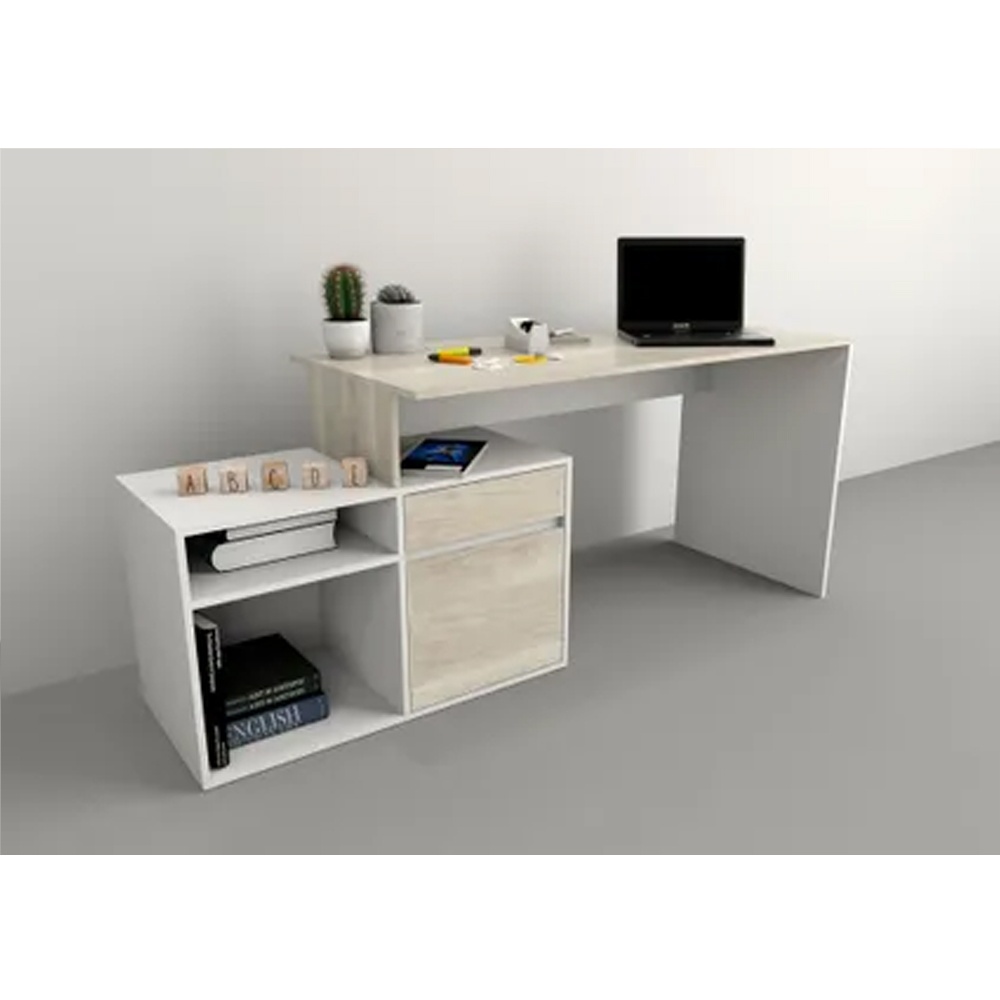 3048 ESCRITORIO con MUEBLE BAJOMueble Funcional de armado en forma de L o el lineal. Un cajón, estante, puerta.MEDIDAS: Profundidad: 0,60 m Largo: 1,40 m Alto: 0,75m: Colores: Olmo Finlandes|Everest Nevado|Everest Olmo Finlandes|Negro - Blanco.: COMPONENTESo Melamina de 15 mmo Sistema Minifixo Tornillo confirmato Tarugos de Maderao Bases plásticas 6 x 1o Escuadras plásticaso Clavoso Tornillos para Correderaso Tornillos 3 x 15 mmo Tornillos para manijaso Correderas metálicas 400 mmo 1 Cajono Soporte Estanteso Bisagras Metalica 3048 ESCRITORIO con MUEBLE BAJOMueble Funcional de armado en forma de L o el lineal. Un cajón, estante, puerta.MEDIDAS: Profundidad: 0,60 m Largo: 1,40 m Alto: 0,75m: Colores: Olmo Finlandes|Everest Nevado|Everest Olmo Finlandes|Negro - Blanco.: COMPONENTESo Melamina de 15 mmo Sistema Minifixo Tornillo confirmato Tarugos de Maderao Bases plásticas 6 x 1o Escuadras plásticaso Clavoso Tornillos para Correderaso Tornillos 3 x 15 mmo Tornillos para manijaso Correderas metálicas 400 mmo 1 Cajono Soporte Estanteso Bisagras Metalica