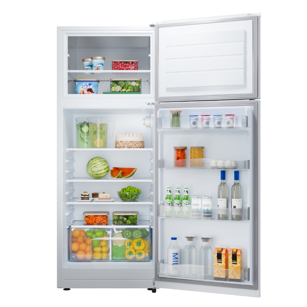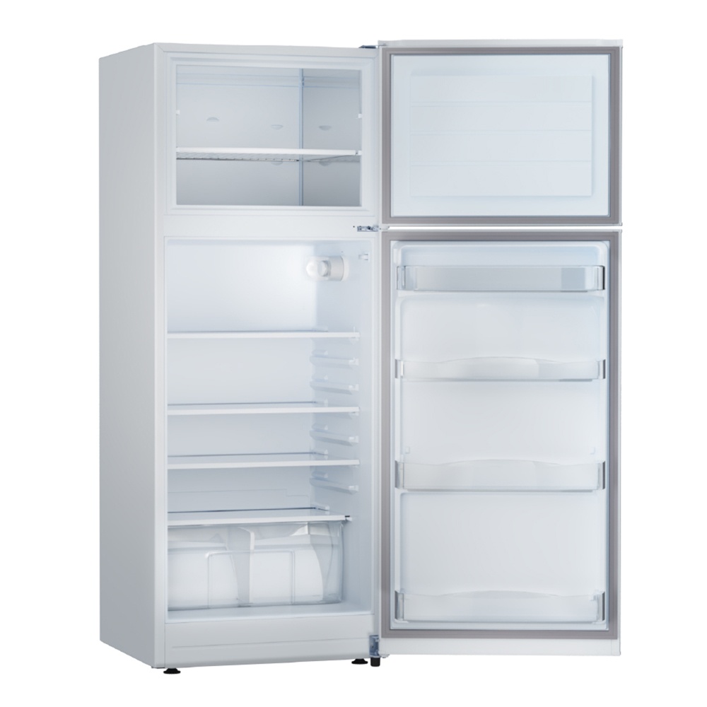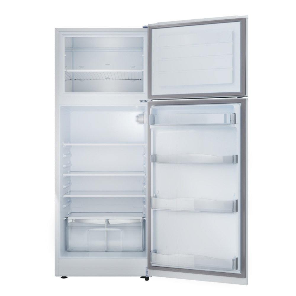 Heladera con freezer cíclica. Eficiencia energética A. Color blanco. Gas R600a. Capacidad bruta 364 litros. Deshielo manual. Estantes de vidrio en refrigerador y alambrón en freezer. Anaqueles en contrapuerta. Cajón para frutas y verduras. Control de temperatura interior. Luz LED. Origen Argentina.