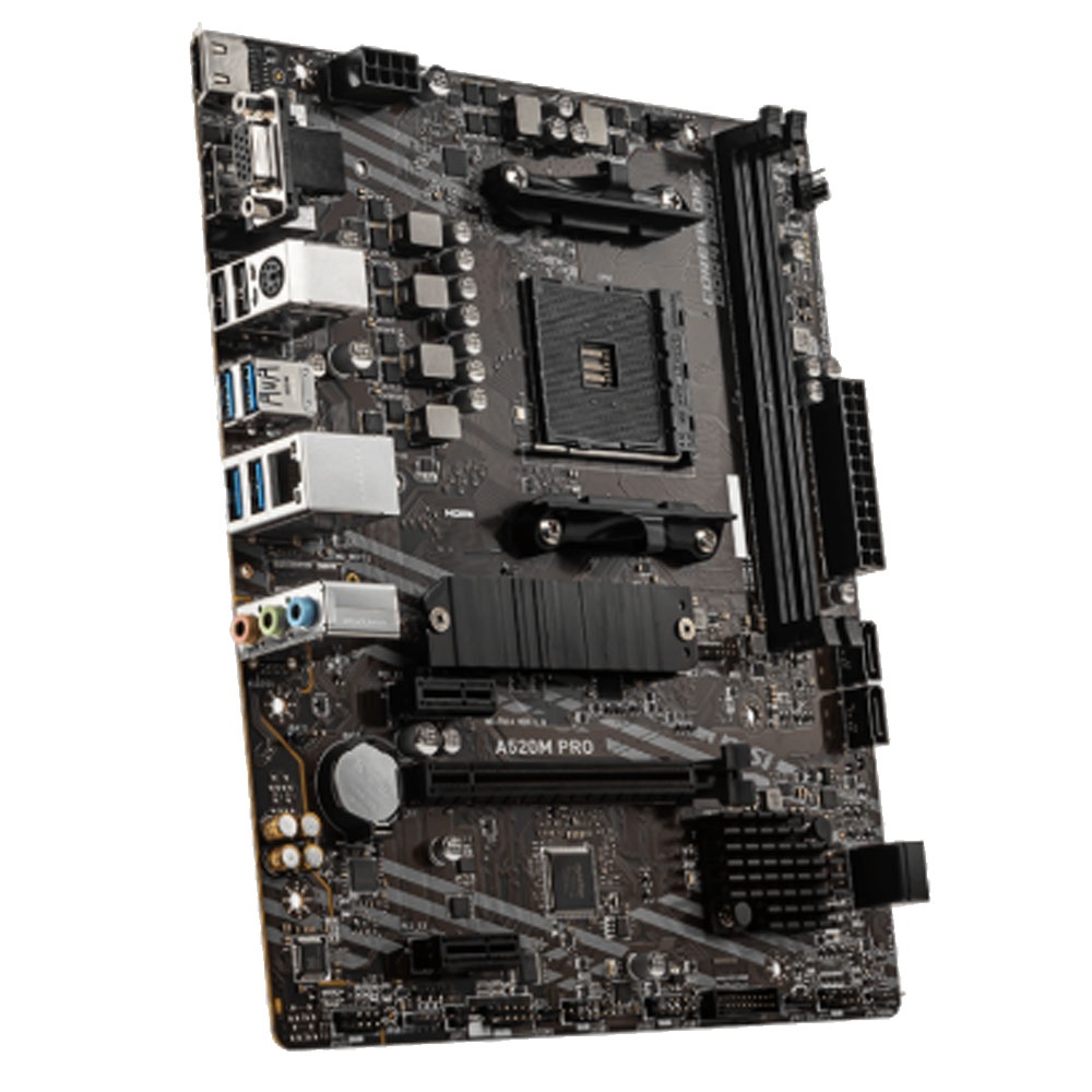 La MSI A520M PRO es una placa madre Micro-ATX diseñada para procesadores AMD Ryzen con socket AM4. Soporta memoria DDR4, almacenamiento M.2 NVMe de alta velocidad y ofrece una base confiable para computadoras de escritorio de uso general, oficina o gaming básico.