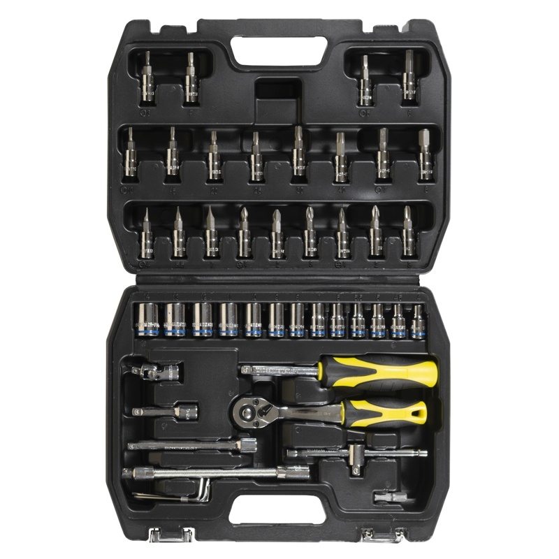 Jgo Bocallaves 45 Piezas (mm) Encastre 1|4" 13 Bocallaves Hexag.: 4-4.5-5-5.5-6-7-8-9-10-11-12-13-14 mm 21 Bocallaves Punta: SL4 - SL5.5 - SL7; PZ1 - PZ2 - PZ3; T10-T15-T20-T25-T30-T40; H3-H4-H5-H6-H7-H8; PH1-PH2-PH3 1 Adaptador Hexagonal 6,35 mm 1 Movimiento Universal Articulado 1 Barra de Extensión 50 mm 1 Barra de Extensión 100 mm 1 Llave Crique 72 Dientes 1 Mango Deslizante "T" 1 Barra de Extensión Flexible 1 Destornillador 3 Llaves Hexagonales: 1.5 - 2 - 2.5 mmPeso: 1.44 Kg.