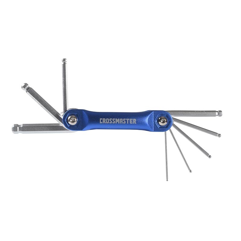 JUEGO DE 8 LLAVES HEXAGONALES PLEGABLES - MÉTRICAS Medidas: 1.5 - 2 - 2.5 - 3 - 4 - 5 - 6 - 8 mm- Terminación Cromada Satinada para mayor resistencia a la corrosión - Cuerpo de aluminio anodizado para alta visibilidad y confort - Punta esférica, permite usar en ángulos de hasta 25º