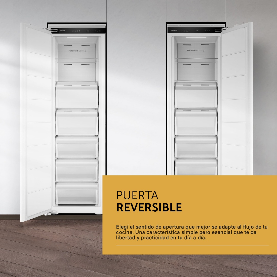 Descubrí el Freezer Panelable WIFI Inverter No Frost 230 litros de Vondom. Este freezer se integra con los muebles de tu cocina, preservando el diseño de tu espacio.