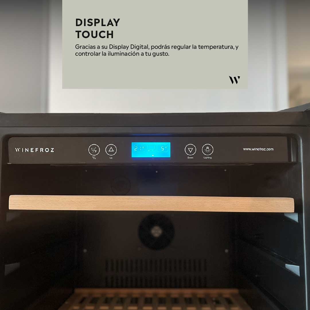 Las cavas premium de vinos Winefroz mantienen un equilibrio ideal entre temperatura, iluminación y humedad. El modelo MN100S, de simple temperatura,permite regularla entre 5ºC a 18ºC según el tipo de vino que desea conservar , tiene una capacidad para 111 botellas y cuenta con motor compresor.