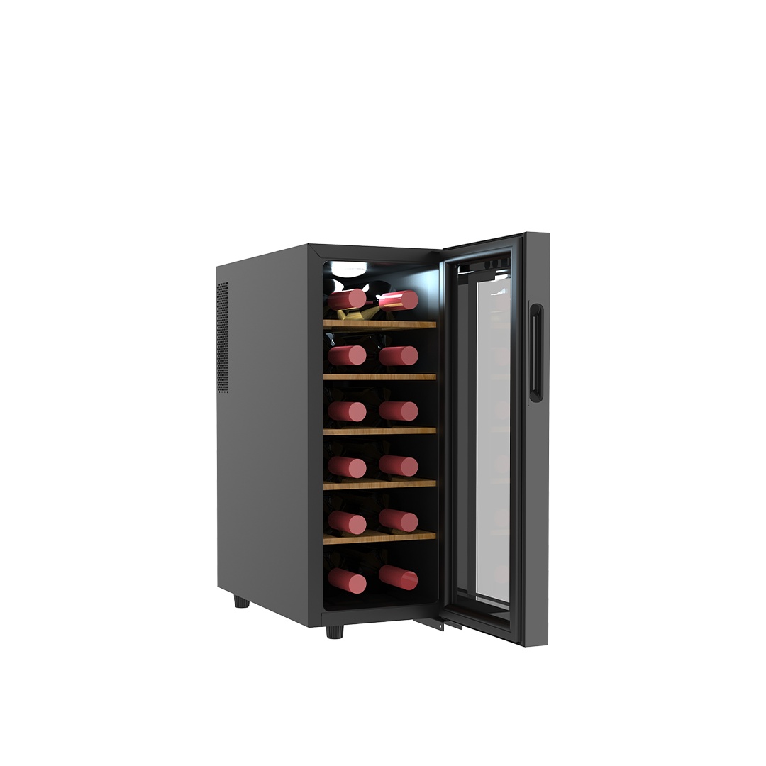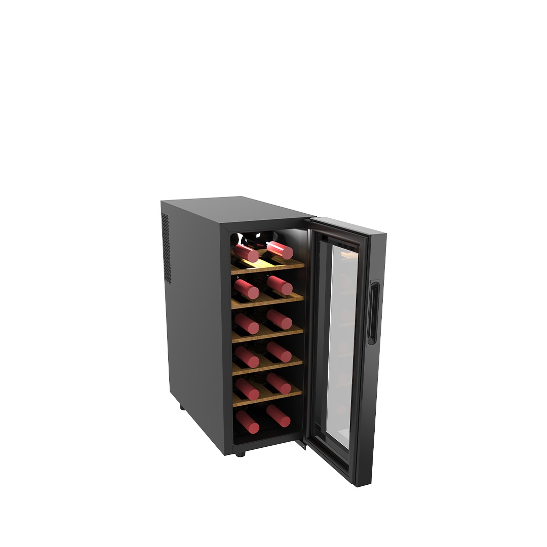La cava T12 cuenta con capacidad para 12 botellas estándar de 750ml y 30 cm de largo.