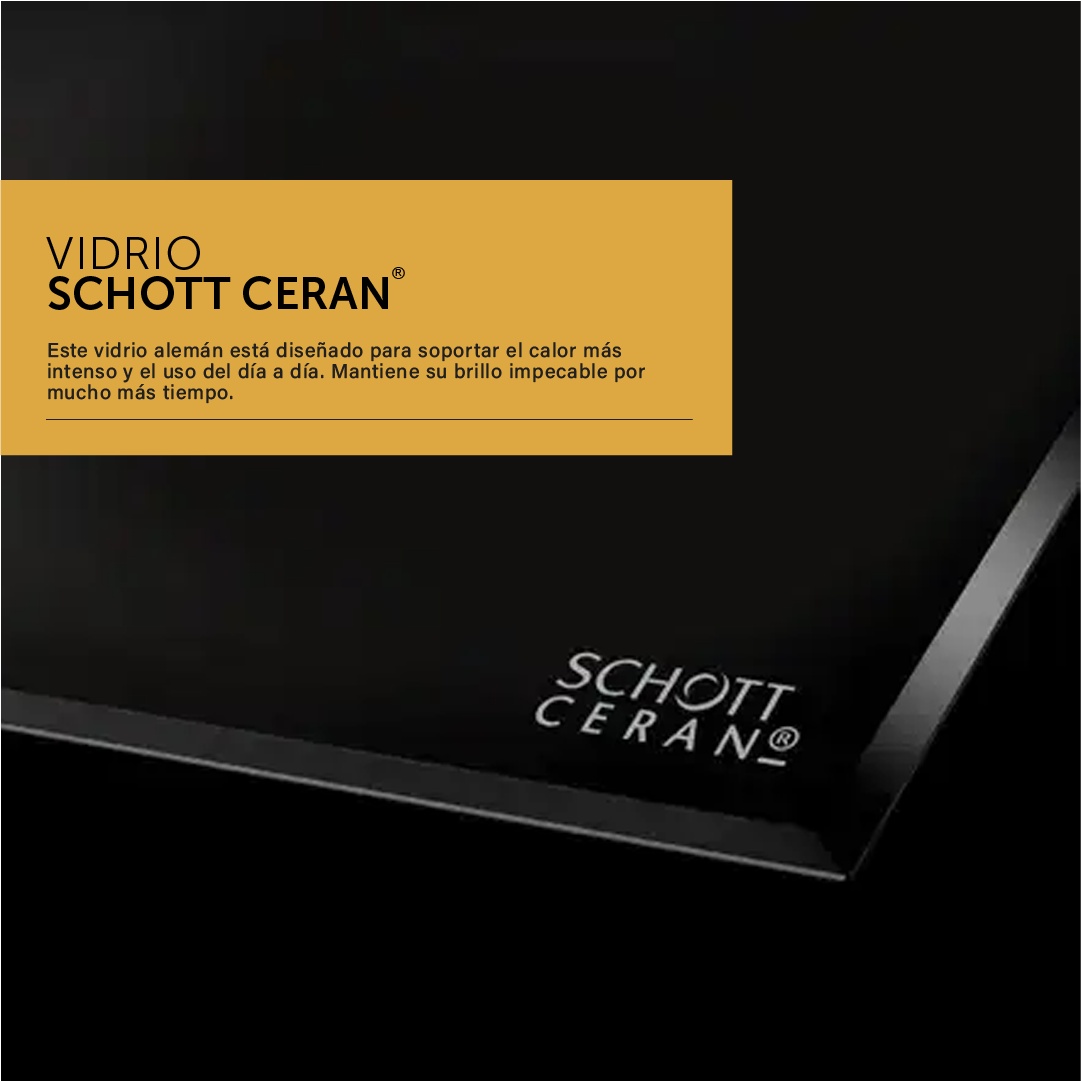 Además, cuenta con vidrioSchott Ceran, conocido por su durabilidad, conductividad térmica y eficiencia energética.