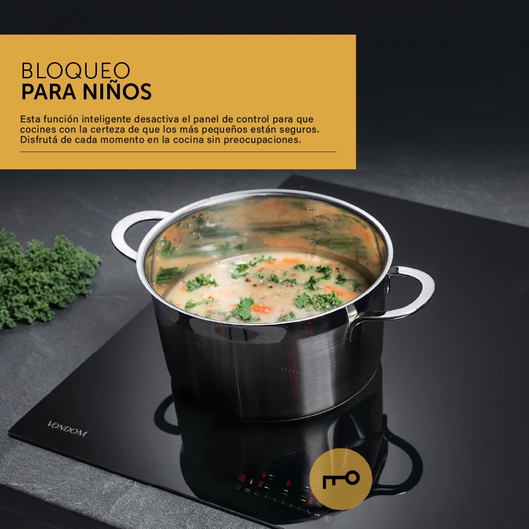 Eltemporizador inteligente, elapagado de seguridad, elbloqueo para niñosyla alerta de calor residual, garantizan una cocina segura y funcional.