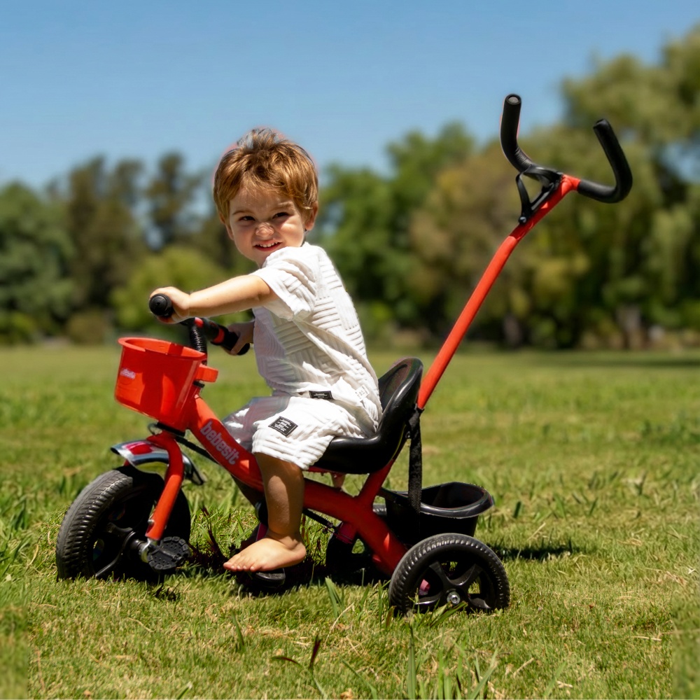 TRICICLO DE ACERO REFORZADO CON MANIJA DE EMPUJE.