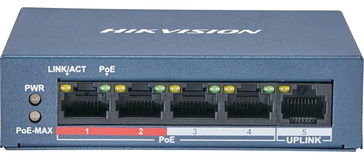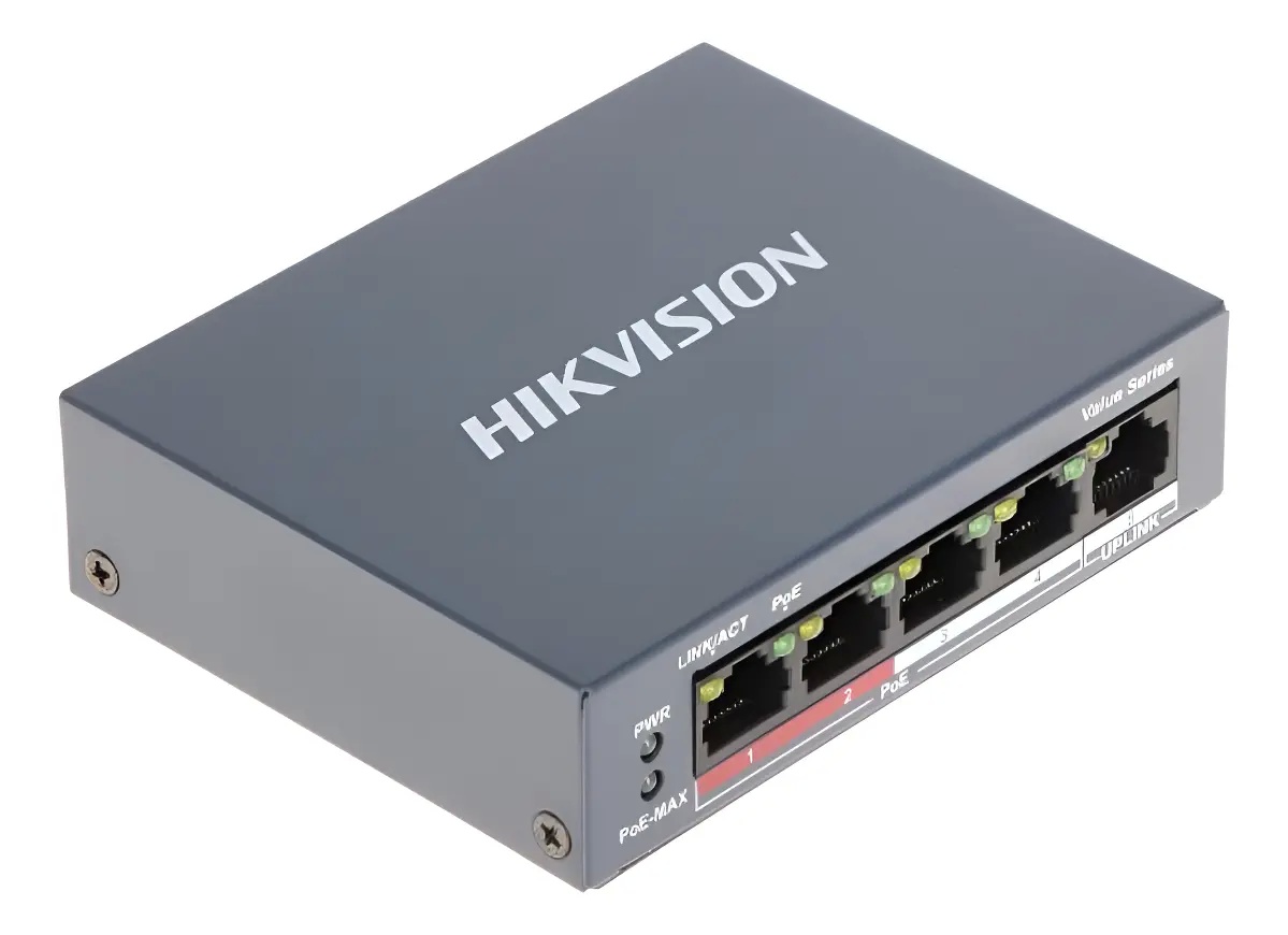 SWITCH POE HIKVISION 4+1, NO ADMIN. 4 P. 10|100 + 1 P. 10|100 UPLINK |35W, POE+ HASTA 250M